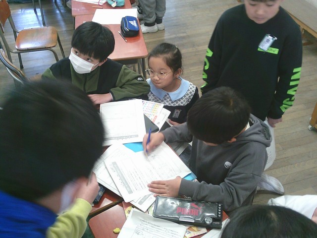 「どこが間違えたのか?」「どのようにして解くのか?」「正しい答えは?」「おしかったね」「すごいね」と友だちどうしでテスト結果を通して振り返っていました。