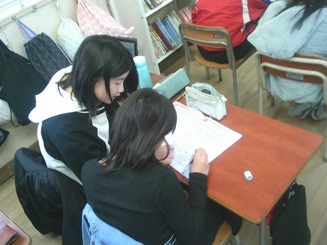 「どこが間違えたのか?」「どのようにして解くのか?」「正しい答えは?」「おしかったね」「すごいね」と友だちどうしでテスト結果を通して振り返っていました。
