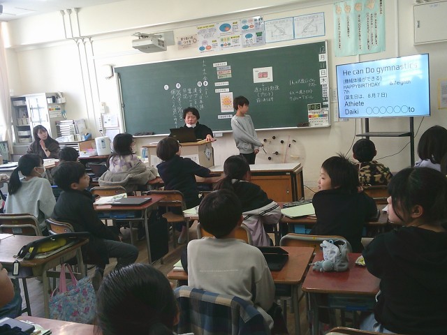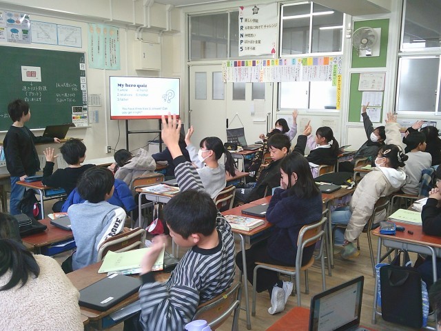 今日の外国語は、これまでに作成してきた『My Hero』についての発表です。クイズ形式あり、紹介するタイプありで、子どもたちの周りには、たくさんのヒーローがいることを感じました。中には、歴史上の人物や学校の先生などもありました。