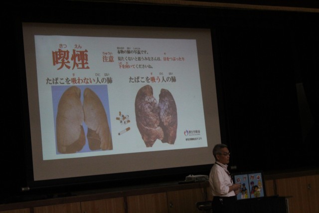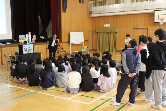 スライドに映る喫煙の影響や、人形劇を通した身近なトラブルの話を、子どもたちは真剣な表情で見つめていました。「これくらいなら」という心の隙を作らず、自分や周りの人を大切にするための「断る勇気」を学ぶ貴重な時間となりました。