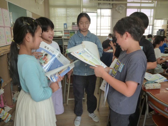 5年生の教室をのぞいてみると、担任の先生が日記を読んでいるところでした。