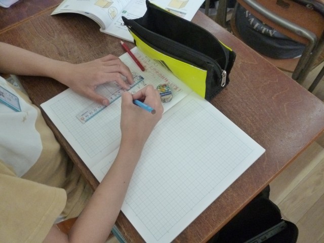 5年生の算数では立体の体積を求める学習を進めていきます。今日は、一人一人が直方体をノートに描いていました。これまでの学習を振り返りながら、立体について学んでいきます。