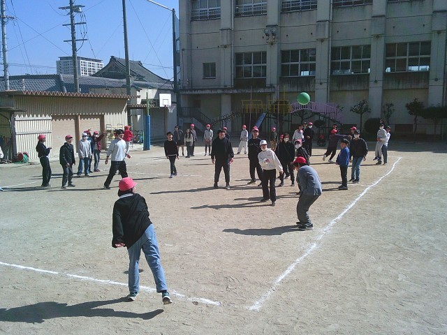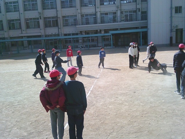 運動場でドッジボールをする6年生の様子が見られたので、降りてみました。