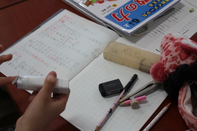 6年生の社会科では、世界の地理に関するテストが返却されていました。返ってきた答案を見て、間違ったところについて、正しい答えを調べて書いていました。