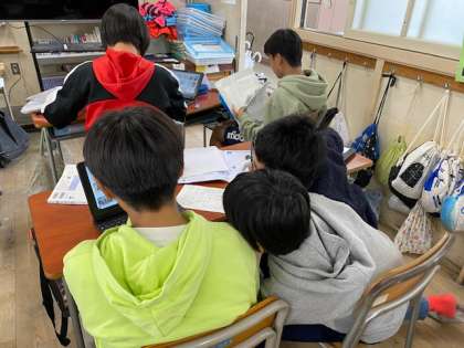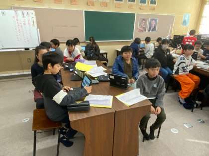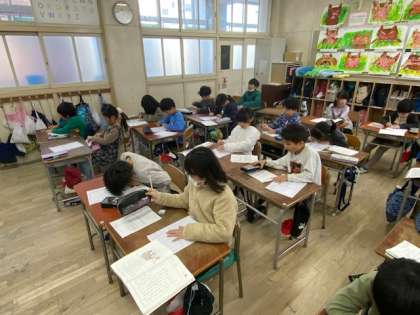 6年生の教室をのぞいてみると、卒業アルバムに載せる作文に取り組んでいました。