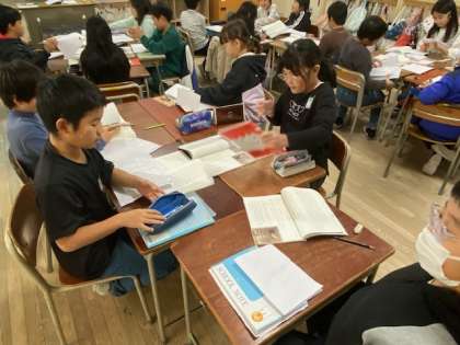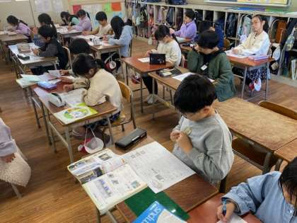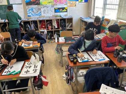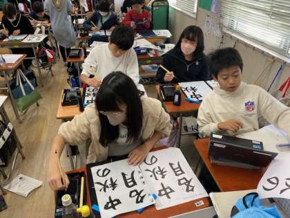 6年生は、習字に取り組みました。少し季節はズレましたが、書いていた字は「中秋の名月」。字のバランスや姿勢に気をつけながら書いていました。