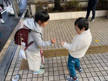 朝からあいさつ運動やジャンケンをする子で賑わっています(^^) -