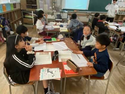 5年生の総合では、先日、永遠瑠(トワリ)マリールイズさんからお話を伺った内容や感想を班でまとめ、発表しました。