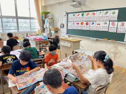 5年生の社会では、スーパーの広告で農作物の産地調べをしたあと、産地クイズをしました。大盛り上がりで、たのしく学習しました(^^)