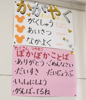 ・本年度、児童の仲間作りの取組のひとつとして、ぽかぽか言葉を行なっています。皆が気持ち良く、がんばろと思える言葉を学校や学級に広げる取組です。各学級で話し合ったぽかぽか言葉を掲示しています。一人ひとりが輝く学校をめざします。