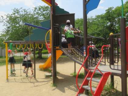 お弁当を食べた後、冒険ランドへ移動して、大型遊具で遊びました。
