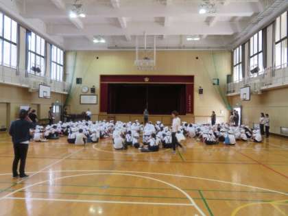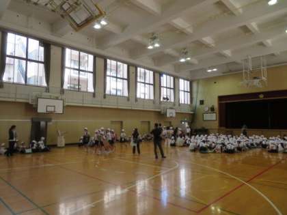 登校後、台風接近により集団下校という設定で訓練を行いました。