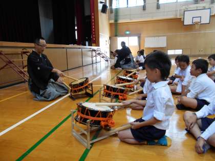 14日(火)1年生から3年生が能楽体験をしました。これは本校の特色ある行事の一つで10年以上前から毎年行っているものです。はじめに能楽「高砂」の一節を鑑賞した後、謡、笛、大鼓、太鼓、小鼓に分かれての実習です。能面をつけて歩くのはとても難しかったです。18日の土曜授業の際にも能楽体験を行い、保護者や地域の皆様にもみていただく予定です。