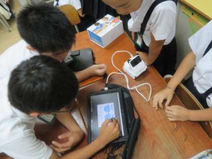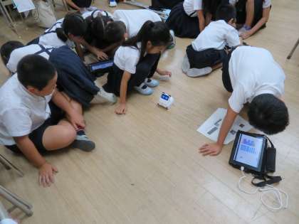 4年生が、パンダ型ロボットを自分の思い通りに動かすプログラミングに挑戦しました。