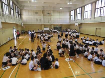 今日の児童集会で、6年生が、明日のたてわり遠足の説明(オリエンテーリングやみんな遊びなど)をしました。天気はなんとかもちそうです。持ち物のチェックをし、早く寝て体調を整えましょう。