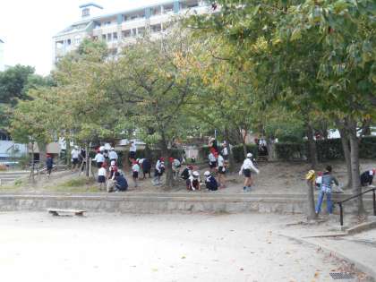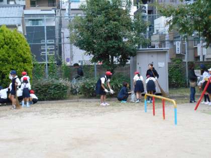 20日(月)全校児童とPTAで大阪マラソンクリーンUP作戦を行いました。日頃、使っている上汐町公園と上七公園をたてわりグループで清掃しました。落ち葉が多かったのですが、中にはたばこの吸い殻や紙ごみなどがあり、PTAの皆さんのご協力を得てきれいにすることができました。