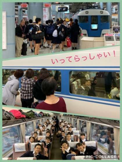 6年生が、あおぞら2号に乗って、一泊二日の修学旅行に出発しました。お見送りに来ていただいた保護者のみなさま、ありがとうございました。