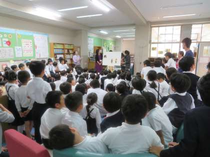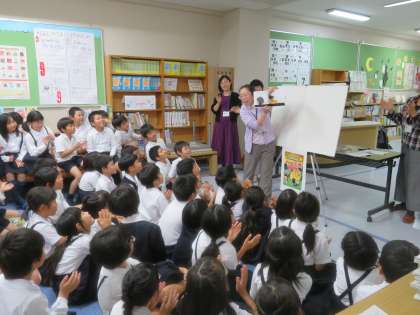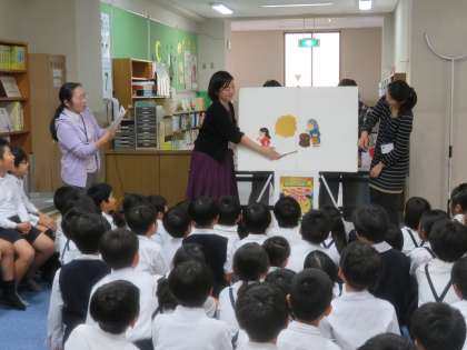 読書週間の取り組みで、お昼休みに読書ボランティア“ひまわり”の皆さんによるパネルシアターがありました。「へっこきよめさん」の面白いストーリー、そして、表現豊かな読み方に、子どもたちは大喜びでした。