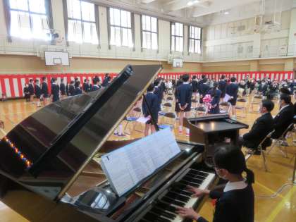 5年生が歌う予定だった、♪旅立ちの日にの低音パートを教職員で歌いました。