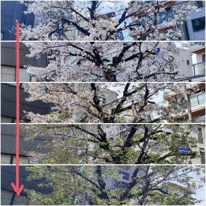 写真は、3/29の桜の木の様子から4/14までの約2週間の様子を定点で記録したものです。