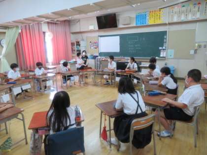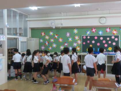 今日は、初めてのたてわり班活動でした。自己紹介の後、1年生に歓迎のメダルが渡されました。例年のように毎週児童集会で顔を合わすことはできませんが、少ない機会を大切にしながら、心の交流を深めていきたいと思います。