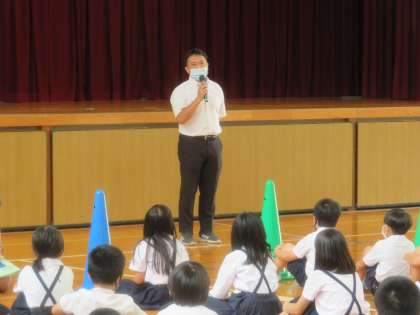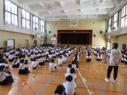 1学期に行った避難訓練は、授業中に火災を想定したものでした。今日の避難訓練は、昼休みに行ったので、自分の教室ではなく、図書コーナー、廊下、トイレなどで非常ベルを聞いた児童もいました。しかし、事前指導を守り、あわてず騒がず放送をしっかり聞いて行動ができていました。
