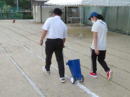 運動会にむけて-新トラックのライン引き-