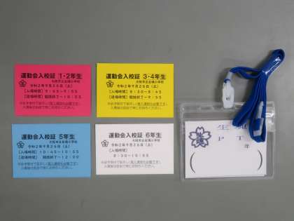 来場時には、「入校証プレート」または、「運動会入校証(※入場時刻によって色が違います)」が必要となります。お忘れなく!