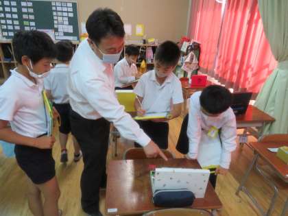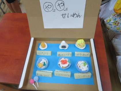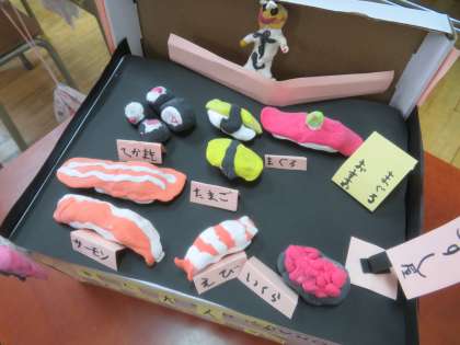生魂商店街は大にぎわいで、お店の人もお客さんも笑顔であふれていました。校長先生と谷口先生も、みんなの作品に心をいやされたそうです。