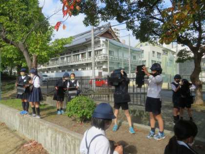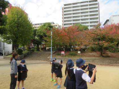 4年生は、四季の移り変わりをタブレットに記録していっています。毎日通っている学校の玄関、いつも遊びに行っている公園ですが、意識して見てみるといろいろな発見がありました。