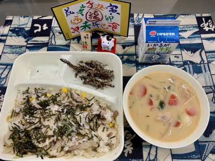 1月8日(金) 〈正月の行事献立〉 れんこんのちらし寿司 ぞう煮 ごまめ