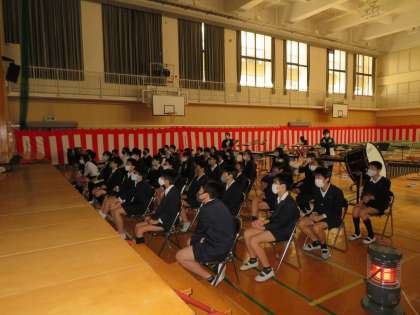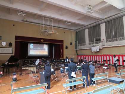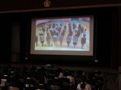 事前に録画した各学年からの動画の贈り物を鑑賞。