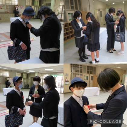 子どもたちの成長を感じながら胸花をつける歴代担任