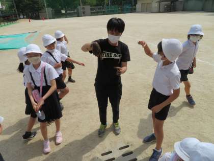総合的な学習の時間で米作りにチャレンジする5年生。火・水曜日に3種類の土をブレンドし、今日は、芽出しした種子を植えました。
