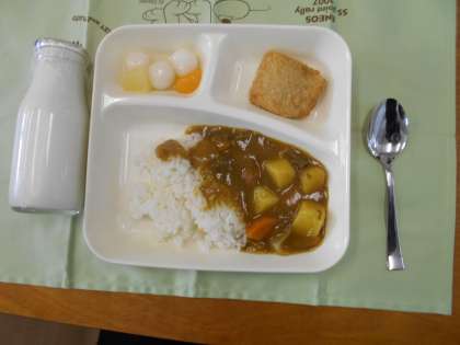 今日から給食が始まりました。1年生にとっては初めての給食です。