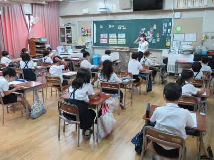 今日は、栄養教諭の方に1・2年生で指導をしていただきました。2年生は、「食べ物のはたらき」について学習しました。