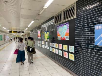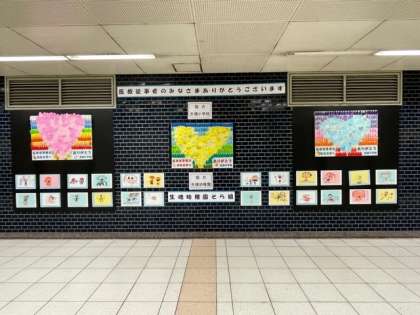 子どもたちが制作したメッセージボードが、地下鉄谷町九丁目駅の連絡通路に掲示されました。
