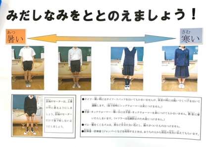 シャツのすそを入れ、帽子をかぶって登校しましょう。