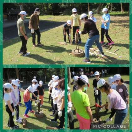 ◇ ピザ作りに必要な薪を、3種類の道具を使って作りました。