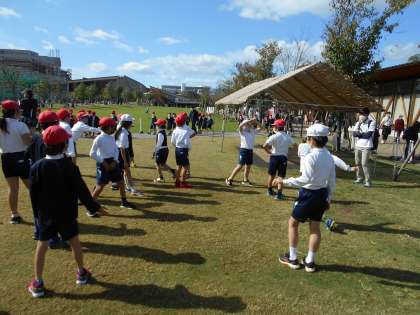 おいしいお弁当を食べた後は、学級ごとにおにごっこなどをして遊びました。