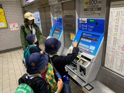 2年生は、行きだけ、団体切符ではなく自分で切符を買って地下鉄に乗りました。今はICカード等を使うことも多いので、切符を買うのが初めてという子が多かったです。