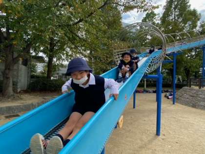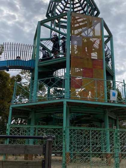 今日の目的地は大阪城公園。大きな立体遊具で遊んだり、どんぐりなどを拾ったり、おいしいお弁当を食べたりと、楽しい時間をすごしました。