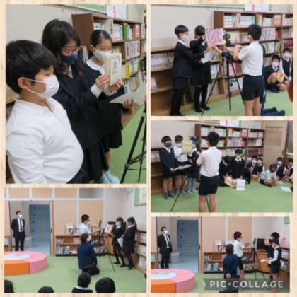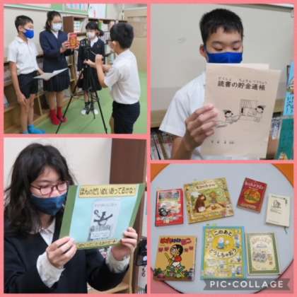 今週・来週は読書週間です。今日の児童集会では、図書委員から「おすすめの本」と「読書週間の取り組み」の紹介がありました。