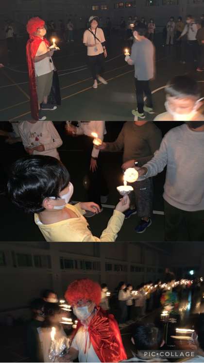 火の神を迎え、みんなで、ろうそくの火を灯しました。