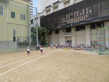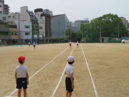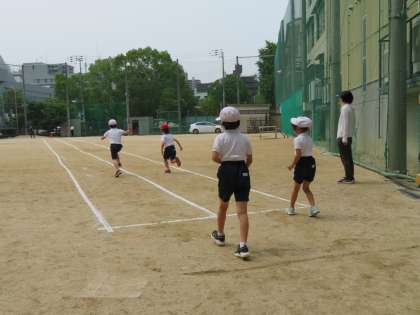 50m走のタイムをはかりました。4月の時より速くなったね。