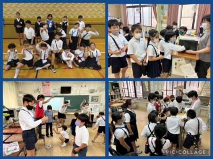 予定した大阪城公園でのオリエンテーリングは、残念ながら雨で中止になりましたが、校内でオリエンテーリングを行いました。先生が待つ10か所のポイントをめぐり、ゲームをしたり、記念写真を撮ったりしました。