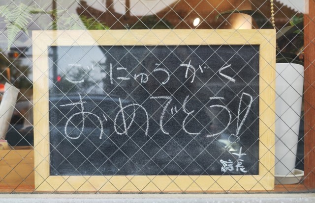 地域を歩いていると、「新1年のみなさま ご入学おめでとうございます」のプレートが飾ってあるのを見つけました。