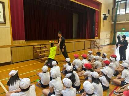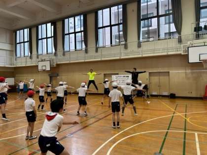 速く走るための方法を、ユーモアを交えながらわかりやすく指導していただきました。ポイントを絞った内容で、5・6年生の子どもたちは、速く走るコツをつかみました。運動会に向けて、走る練習をがんばろう!