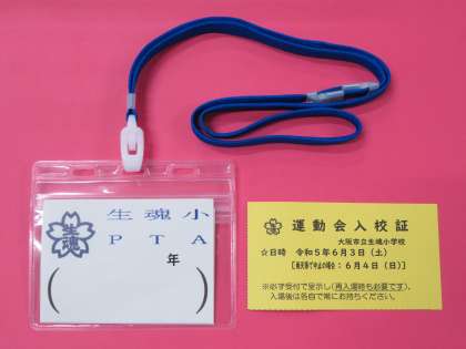 「入校証プレート」または「運動会入校証」を南門受付でお示しください。再入場時にも必要ですので、常時携帯ください。