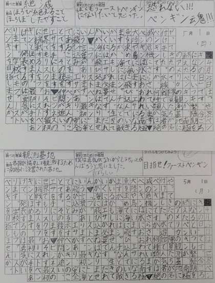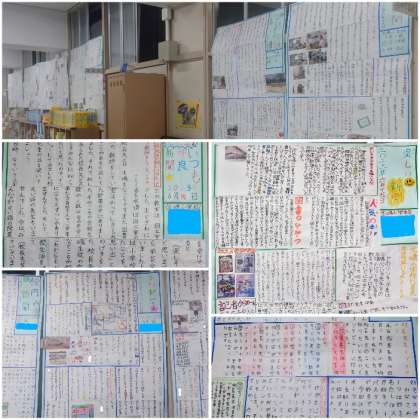 しかしながら、昨年度の学力の分析を行う過程で、「聞く」「書く」に課題が見られることがわかってきました。上の写真は、4年生の国語科の学習の成果です。先日からのインタビューが活きています。下の写真は、6年生の活動です。新聞を活用し、段落・文脈を意識しながら視写を1学期早々から続けています。また、単に視写するだけでなく、タイトルを考えたり、要約したり、語彙を広げたりといった活動にもつなげています。